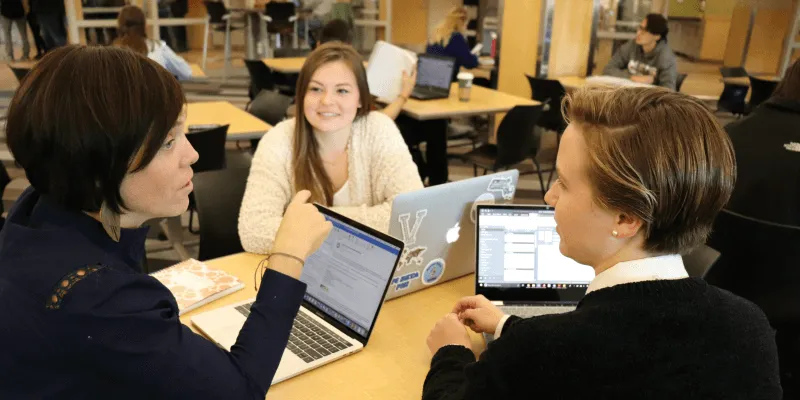 Health Sciences students Sara Briggs ’20 and Sydney Wolff ’19 are working together on a project to develop a nursing leadership academy focused on patient-centered care. The project is an internship with the Institute for Patient- and Family-Centered Care in Bethesda, MD. Wolff and Briggs are exploring ways to involve nurse educators, nurse researchers and front-line nursing staff in project-based learning experiences that foster high-quality, collaborative patient care practices.