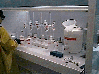 Before beginning the separation, make sure that there are at least 1000 ml of 1.2 N HCl, 500 ml of 3 N HCl, and 1000 ml 6 N HCl mixed. Use the labeled mixing bottles and a clean (acid washed and NANOPURE RINSED) graduated cylinder to mix more if needed.