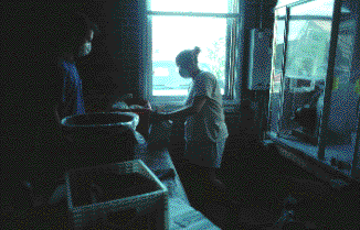 4) Clean the jaw crusher and the area around it with a small broom between each sample, vacuum to remove remaining dust. Blow out with compressed air. Vacuum. The plate grinder must also be thoroughly cleaned between each sample. Use a shop-vac to clean every part of the plate grinder exposed to the rock or powder. Then blow out with compressed air. The plates need to be scrubbed with a dry, stiff brush. GOOD CLEANING IS ESSENTIAL. REMOVE ALL TRACES OF THE LAST SAMPLE FORM THE ENTIRE GRINDING CABINET.
