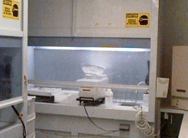 2) When you are ready to take the lab ware out of the bath, turn down the heater. If the bath is allowed to cool down for a couple of hours, at least, the acid will not react as quickly with the Neoprene glove material.
