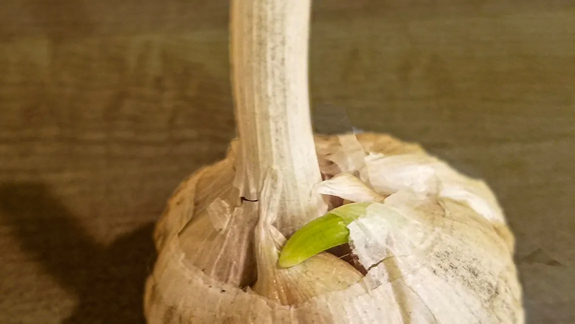 It's midwinter and you reach into your paper bag of carefully stored garlic. You pull out a bulb and see a sprout emerging from the top.