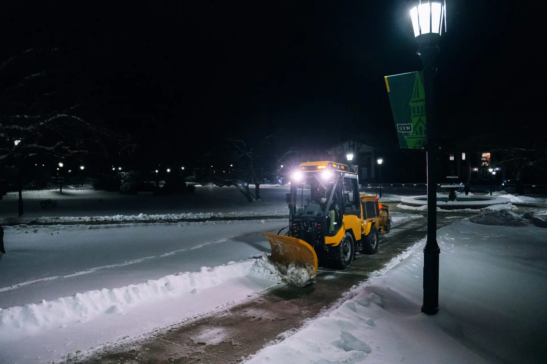 Physical Plant/Grounds crew is responsible for snow and ice removal, snow plowing, and salting/sanding of University sidewalks, roadways and parking lots.