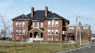 North of the gymnasium addition is a flat-roofed classroom wing,