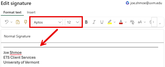 - To ensure your signature is attached in your email correspondence you will need to specify a default signature. In the box marked Choose default signature, select your UVM email, then select your newly created signature for New Messages and Replies/Forwards.