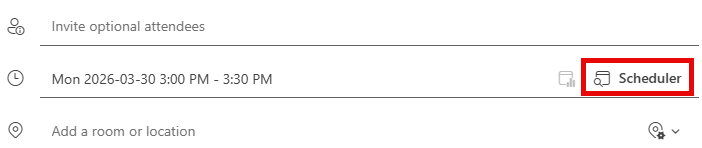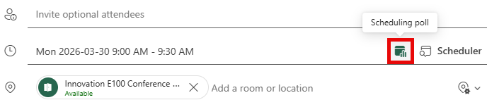 - You can also create a Scheduling Poll to assist in finding a meeting time that works for all attendees. To get started click the Scheduling poll icon to the left of the Scheduler button.