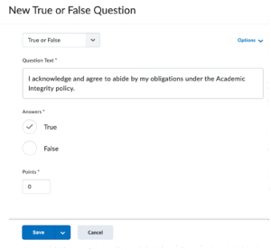 Instructors can now assign 0 (zero) points to a quiz question to collect non-graded information, feedback or personal input.
