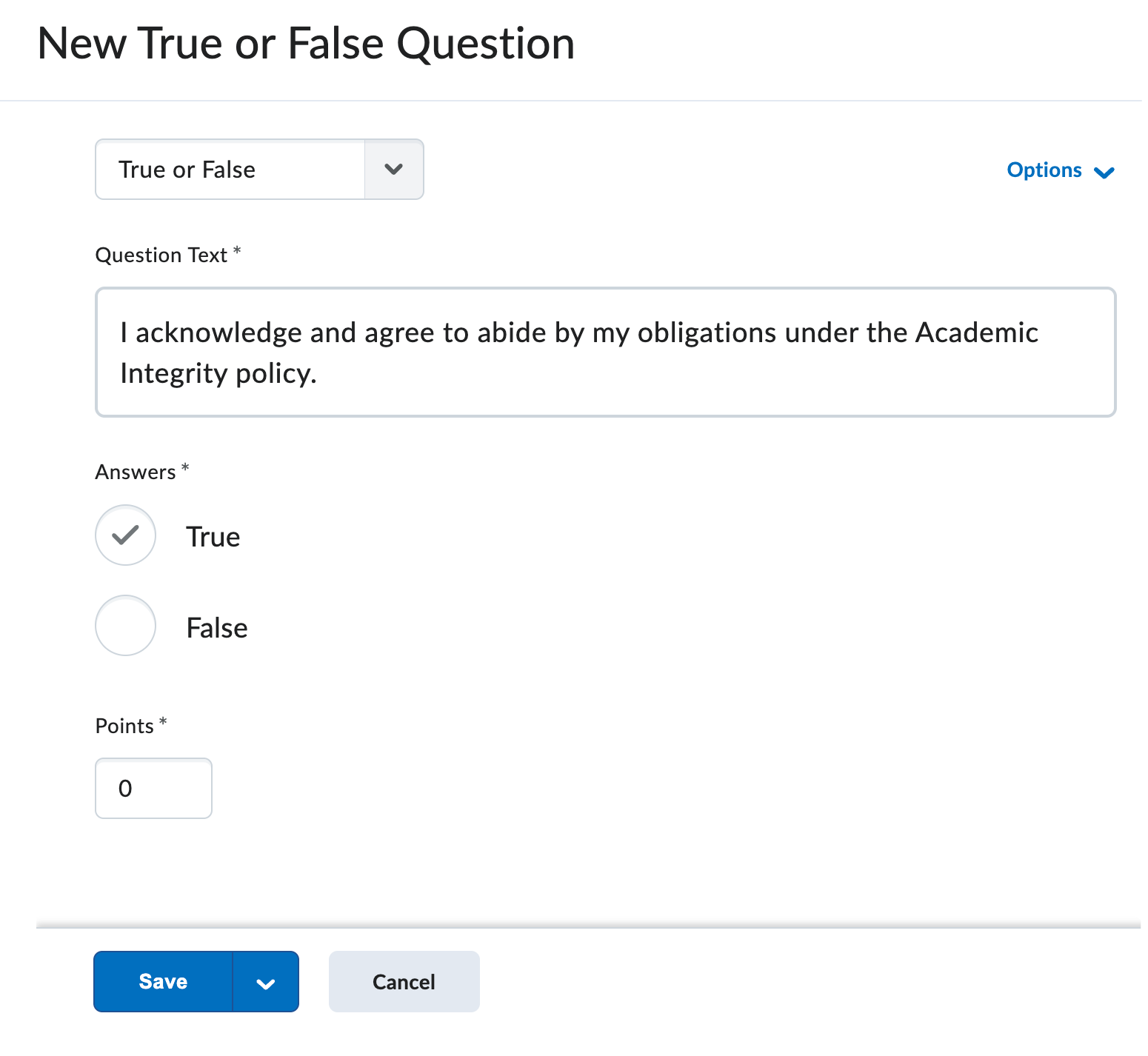This feature eliminates the need for workarounds such as assigning 0.01 points or manually adjusting scores after submission. Instructors can enter zero points in the points field for any question type within the quiz, ensuring that these questions do not contribute to the quiz’s total points.