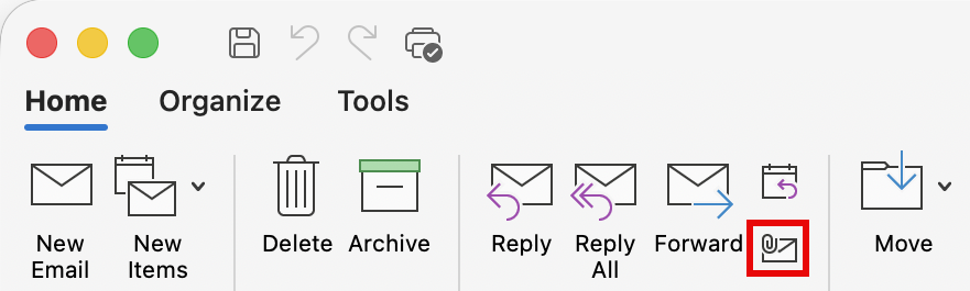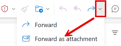 - Open the More Respond Actions drop-down to the right of Forward, and then select Forward as Attachment.