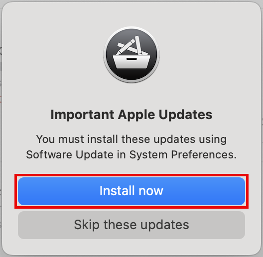 - Managed Software Center will tell you there are “Important Apple Updates” and that you must install them using Software Update in System Preferences. Click Install now.