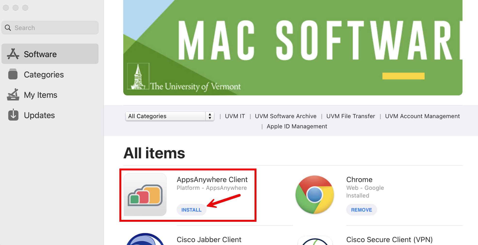 Managed Software Center comes pre-installed on UVM owned laptops that have been enrolled in the Apple DEP program, but can also be installed manually as needed.
