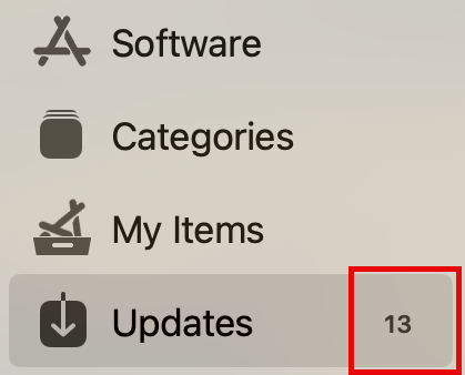 - If there are any updates pending, indicated by a number next to the Updates tab on the navigation menu on the left side of the window, proceed with the update process below before installing any new software.