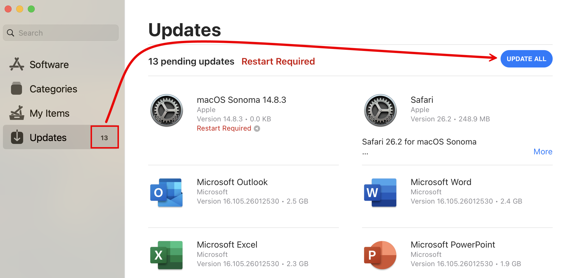 - Launch Managed Software Center, click Updates, and then click the UPDATE ALL button.