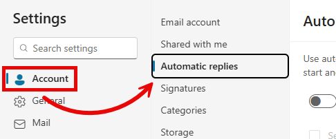 - Under Mail, click Automatic replies.