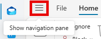 - From the Mail tab of the Outlook app, click the hamburger icon () to Show the navigation pane.