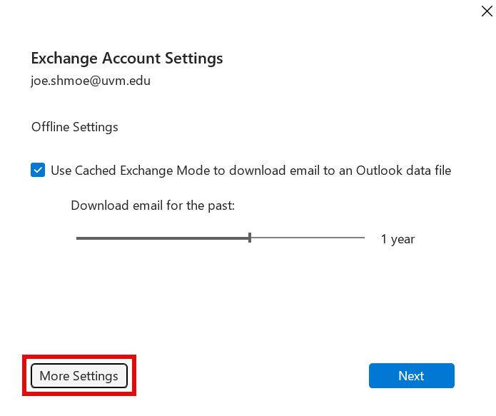 - Type in the email address for the shared mailbox, click OK three times, then Next, Close, and Done.
