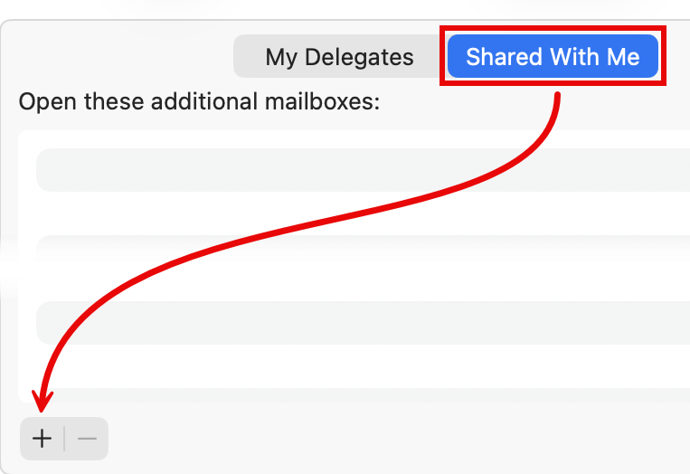 - Select the Shared With Me tab, and click the plus (+) sign in the bottom-left corner.