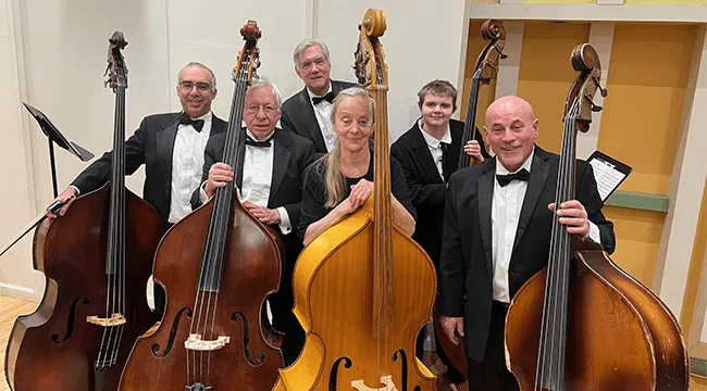 A number of Larner community members—including Ariel Bensimhon, M.D., assistant professor of anesthesiology, double bass; Gerald Davis, M.D., professor of medicine emeritus, percussion; Theodore Marcy, M.D., M.P.H., professor of medicine emeritus, tenor; and Donald Mathews, M.D., professor and chair emeritus of anesthesiology, double bass—participated in the concert.
