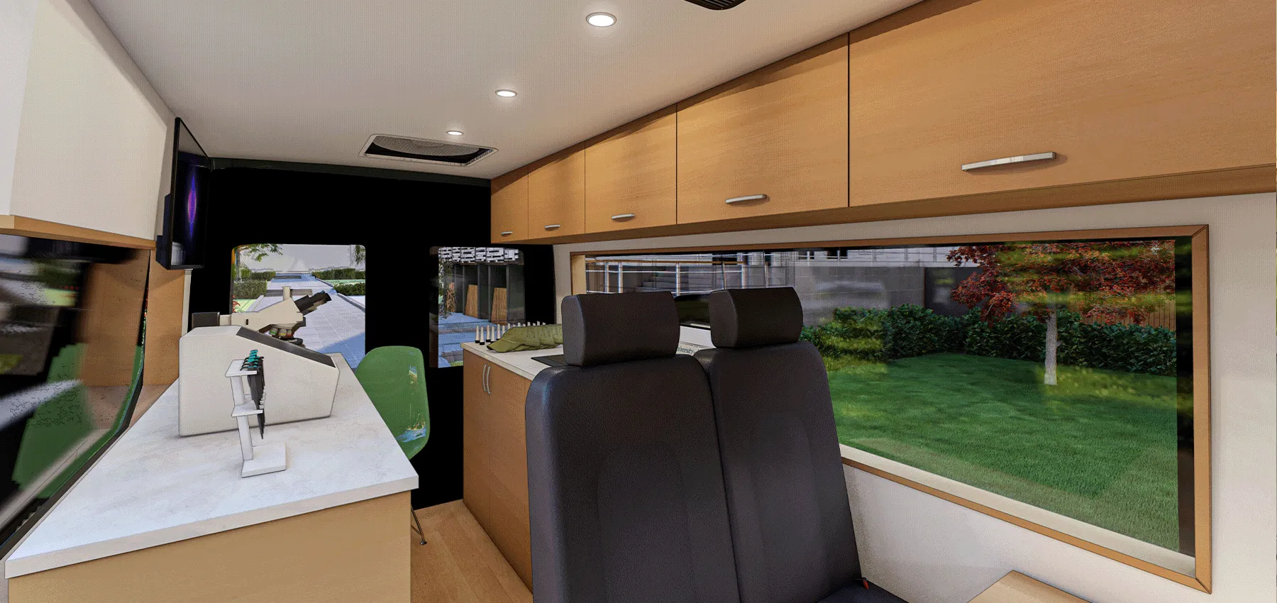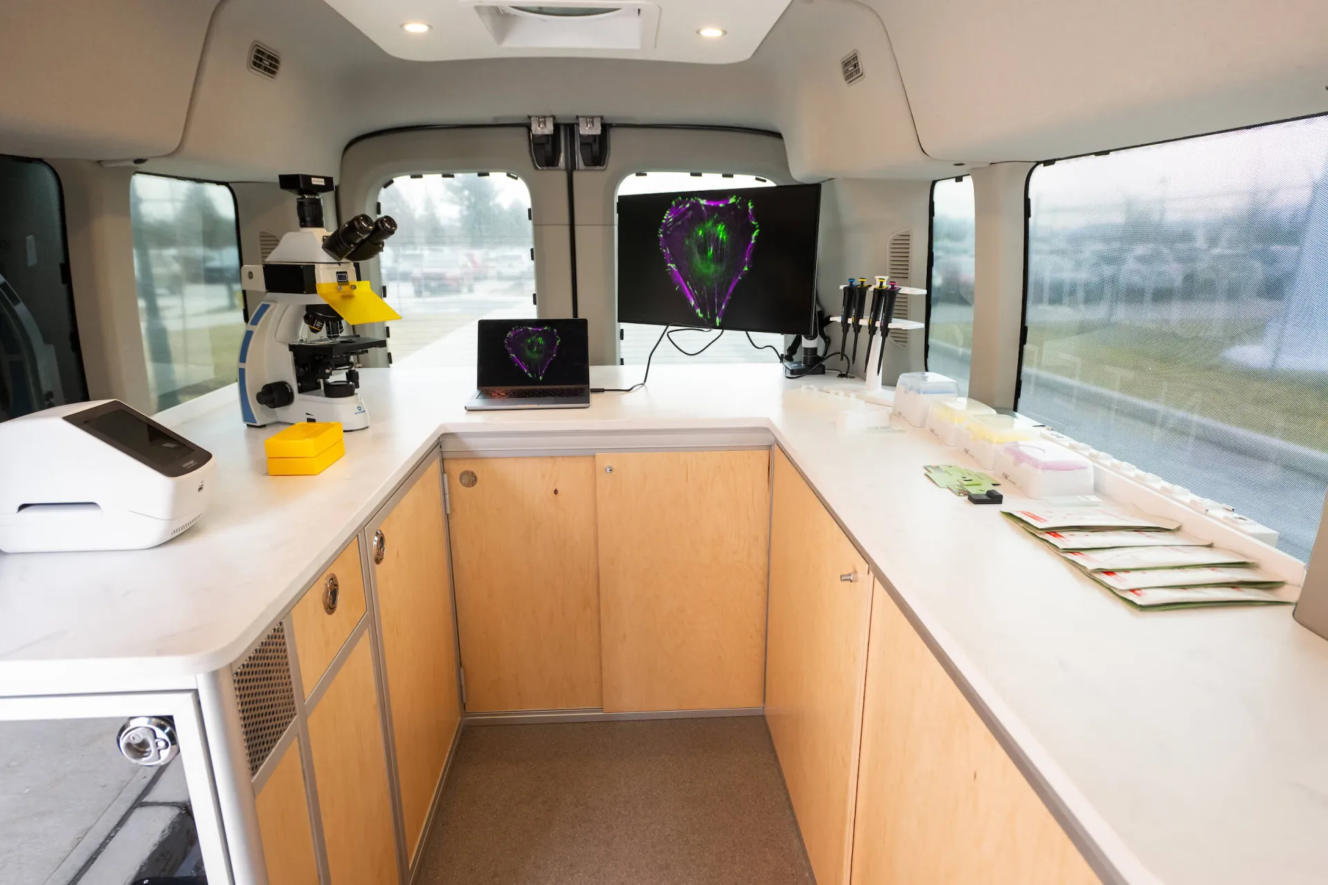 The BioMobile Discovery Lab is a mobile lab outfitted with all the equipment needed for students in rural schools to conduct a cell biology experiment using microscopy techniques.