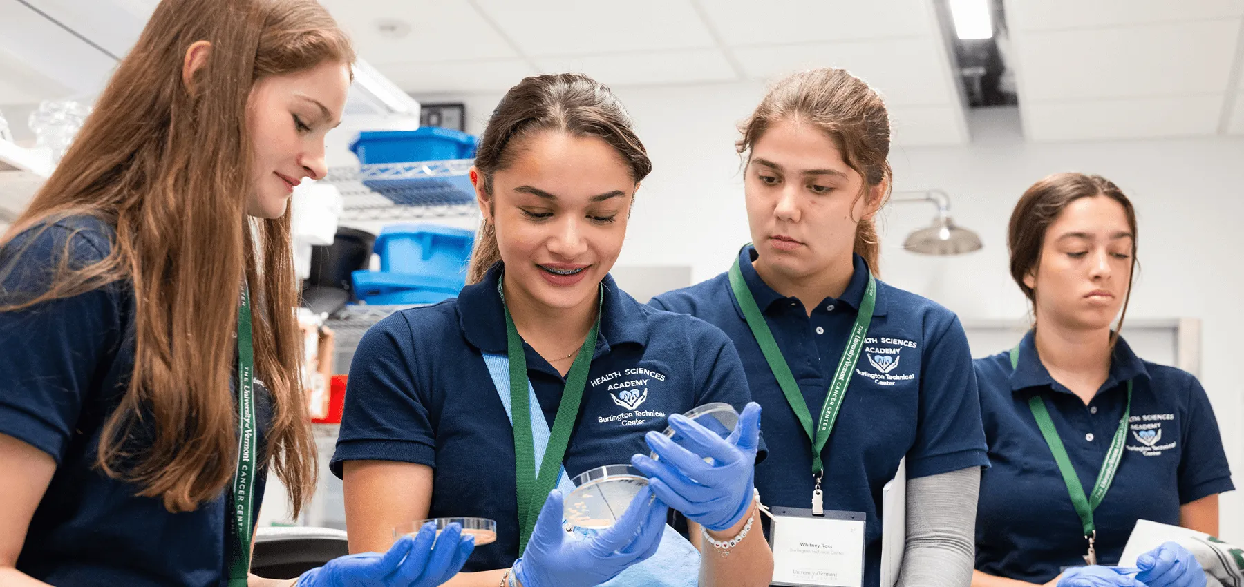 They also visit UVM labs to meet with Cancer Center faculty and student researchers and see their work first-hand. Demonstrations include viewing cancer cells through microscopy techniques, observing specialized laboratory equipment, and witnessing demonstrations on growing and visualizing crystals.
