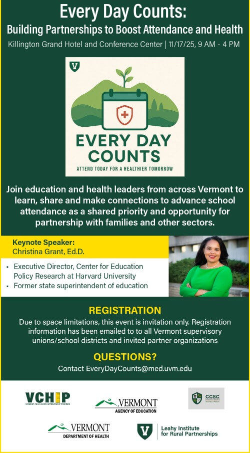Presenters: Susan Lieberman, Senior Fellow, Attendance Works; Chelsea Lareau, School Engagement Clinician, Colchester School District; Andrew Conforti Ed.D., Principal, Colchester High School