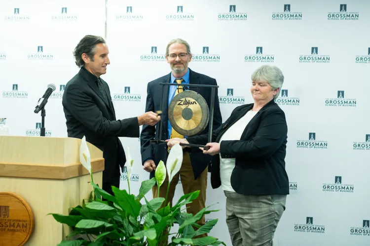 The University of Vermont (UVM) yesterday announced a new initiative that will fund and support students in launching their business ideas and growing them into successful enterprises in Vermont at a special Grossman School of Business (GSB) event yesterday. The Joy and Jerry Meyers Cup is a business launch competition made possible by a donation to GSB by Chip Meyers, the son of two UVM alumni, and his wife Louise Meyers representing the Meyers Family Trust.