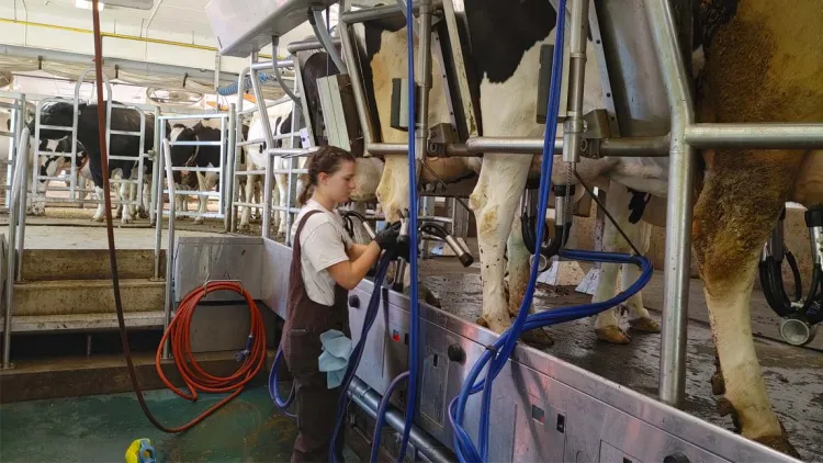 A CREAM student milking dairy cows at the Paul R. Miller Research and Educational Center