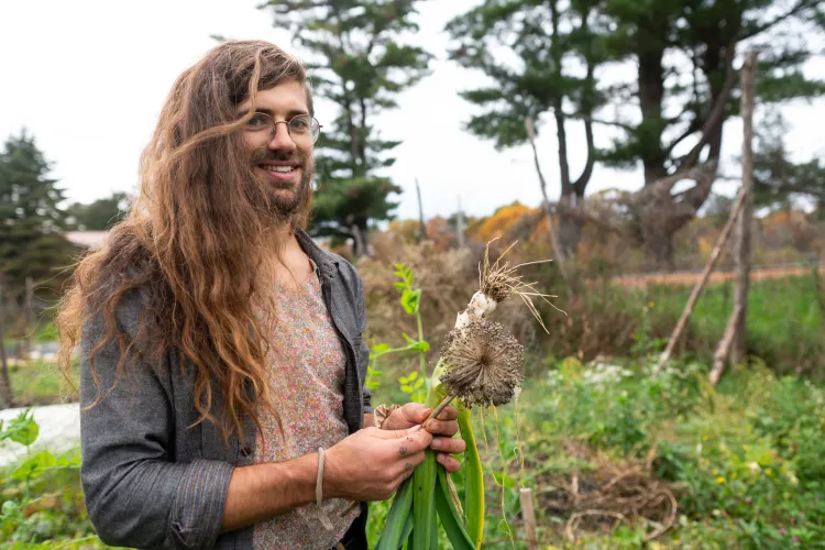 Sam Bliss Ph.D. '23, a postdoc at UVM, studies food that is not for sale. He is part of a team of researchers investigating food security in Maine and Vermont. Photos by Andy Duback.