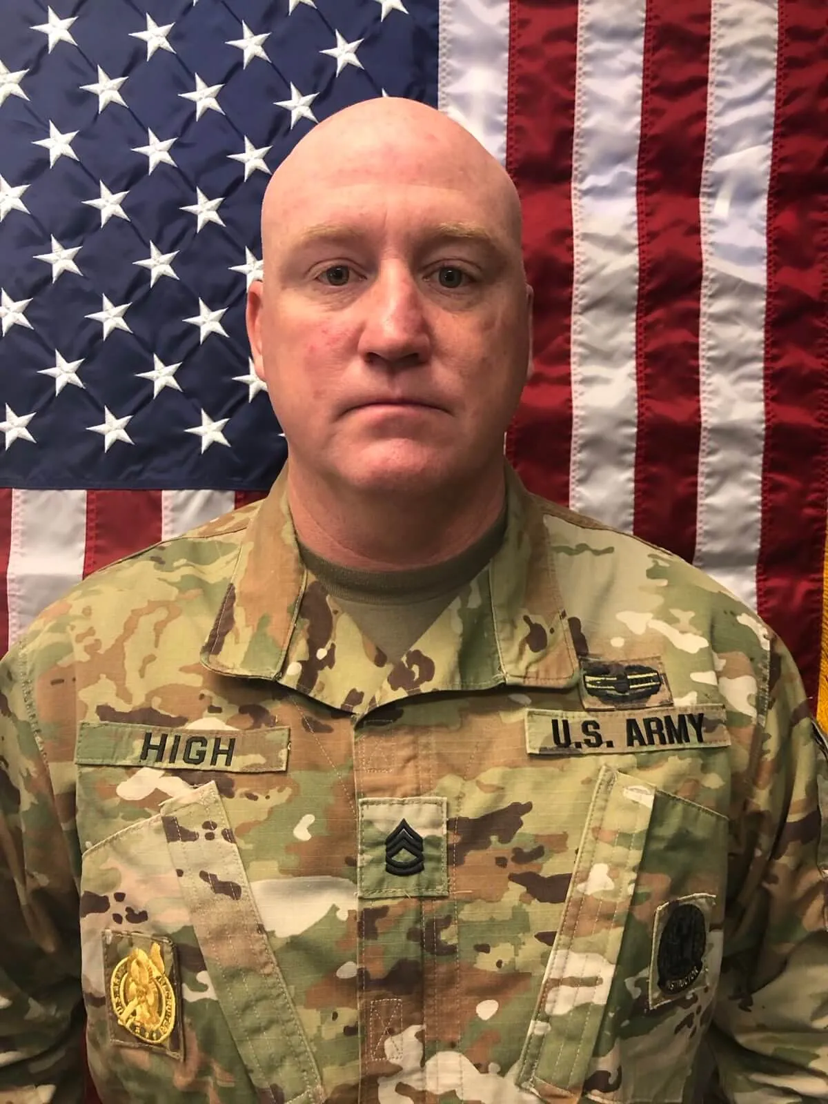 SFC High’s military awards and decorations include the Army Commendation Medal (1 Silver OLC), Army Achievement Medal (3 Bronze OLC), Joint Meritorious Unit Award, Meritorious Unit Commendation (1 Bronze OLC), Army Superior Unit Award, Army Good Conduct Medal (6 Knots), National Defense Service Medal, Iraq Campaign Medal (2 Bronze Star), Global War on Terrorism Service Medal, Global War on Terrorism Expeditionary Medal, NonCommissioned Officer Professional Development Ribbon (Numeral 4), Army Service Ribbon, Overseas Service Ribbon (Numeral 3), Army Recruiter Gold Badge (3 Sapphires), Combat Action Badge, Expert Marksmanship Badge, German Armed Forces Schutzenschnur Badge, Army Driver’s Badge with “T” device and the prestigious Order of St. George.