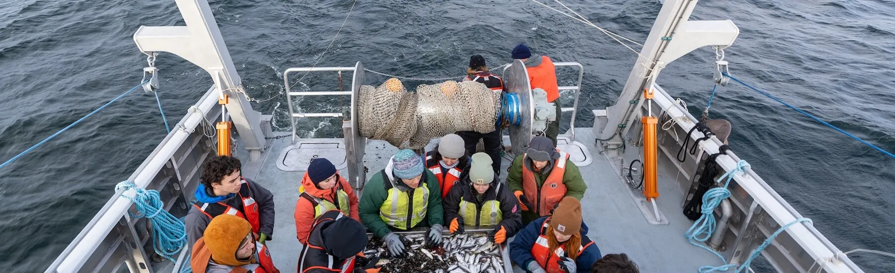 The Rubenstein School's research vessel, the R/V Marcelle Melosira is a hybrd-electric catamaran that operates from May through November on Lake Champlain. The vessel is used for research and teaching. All students in the Rubenstein School take at least one course that allows them to experience the lake from the research vessel. It is equipped with state-of-the-art equipment for mapping underwater species distribution, sampling sediment, plankton sampling, and more.