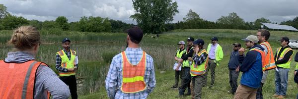 On June 8th, Sarazen and the City of South Burlington Stormwater Department brought 25 stormwater practitioners to tour stormwater infrastructure projects. During the tour, Sarazen and Dave Wheeler, City of South Burlington Deputy Director of Water Resources, shared lessons learned after implementation, research findings from monitoring studies, and operation and maintenance (O&M) considerations.