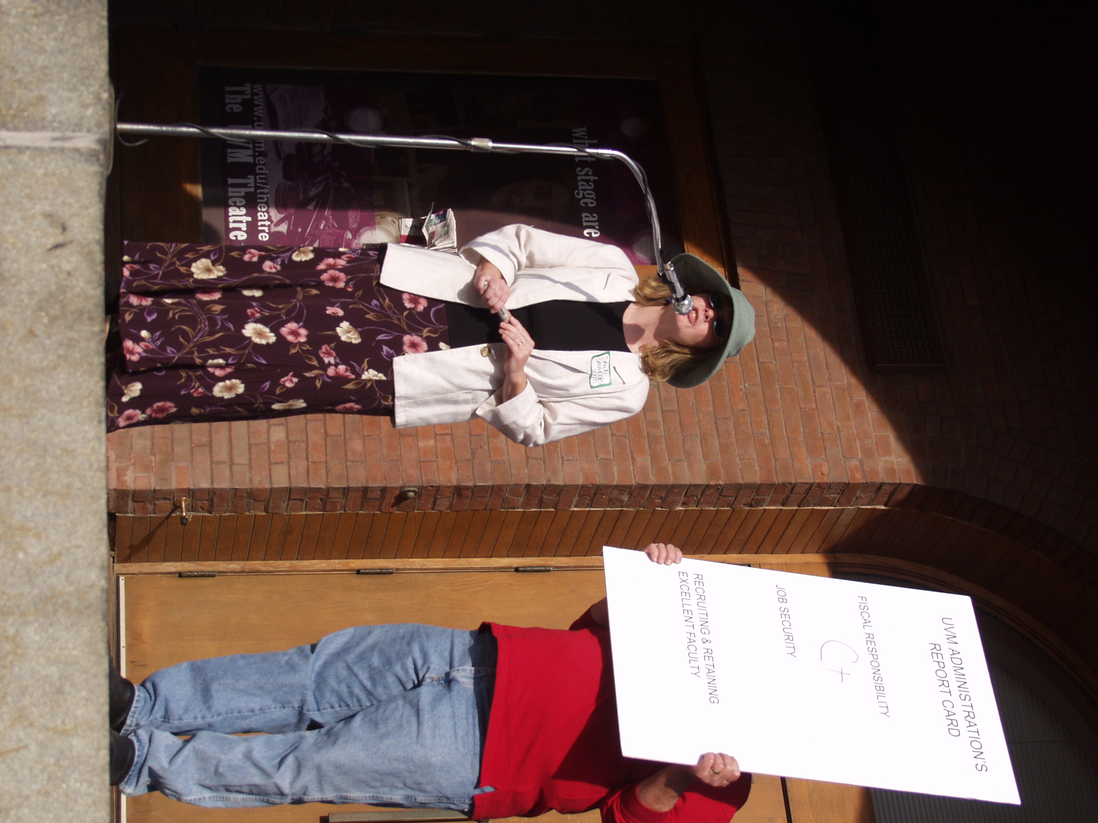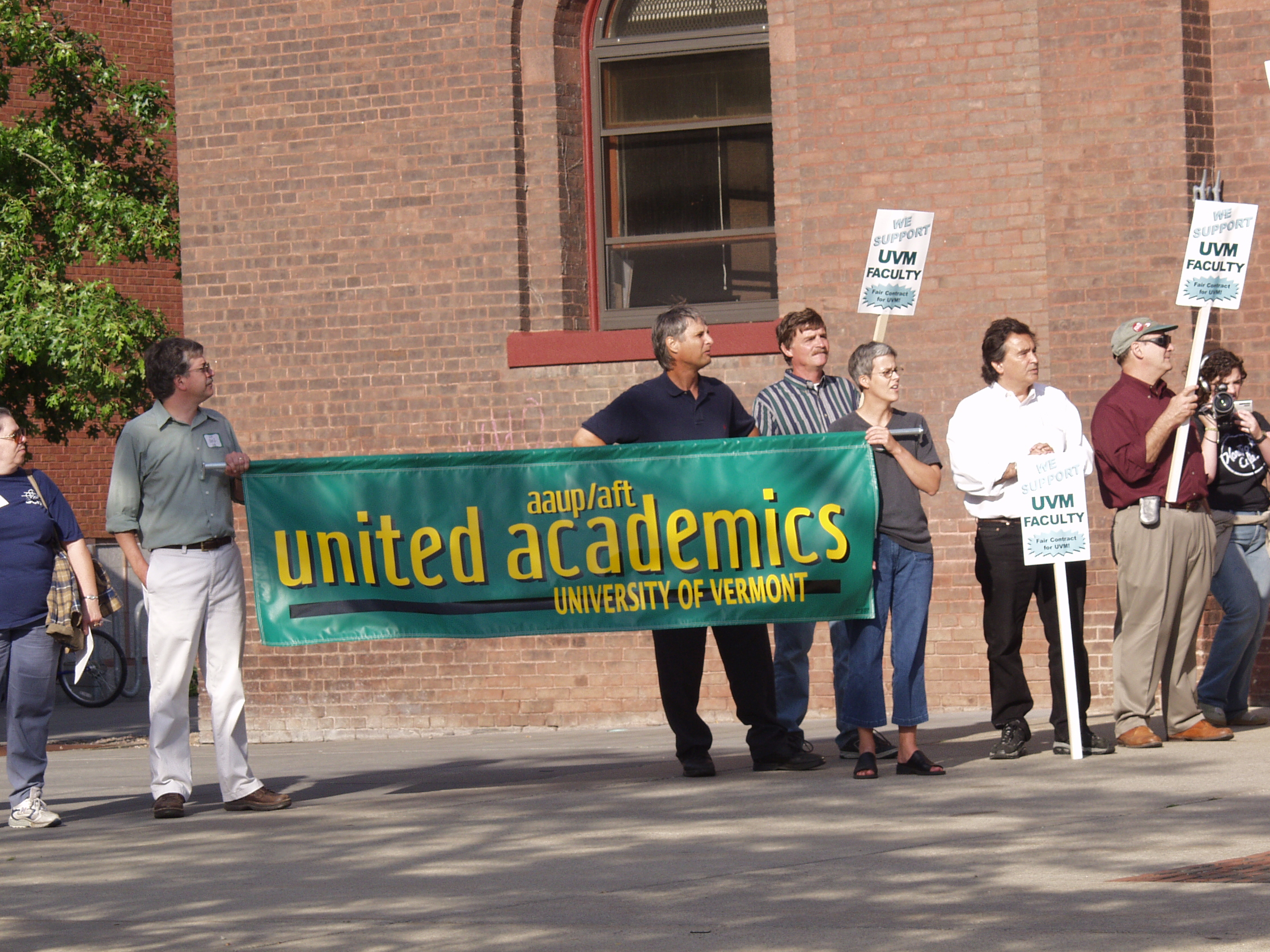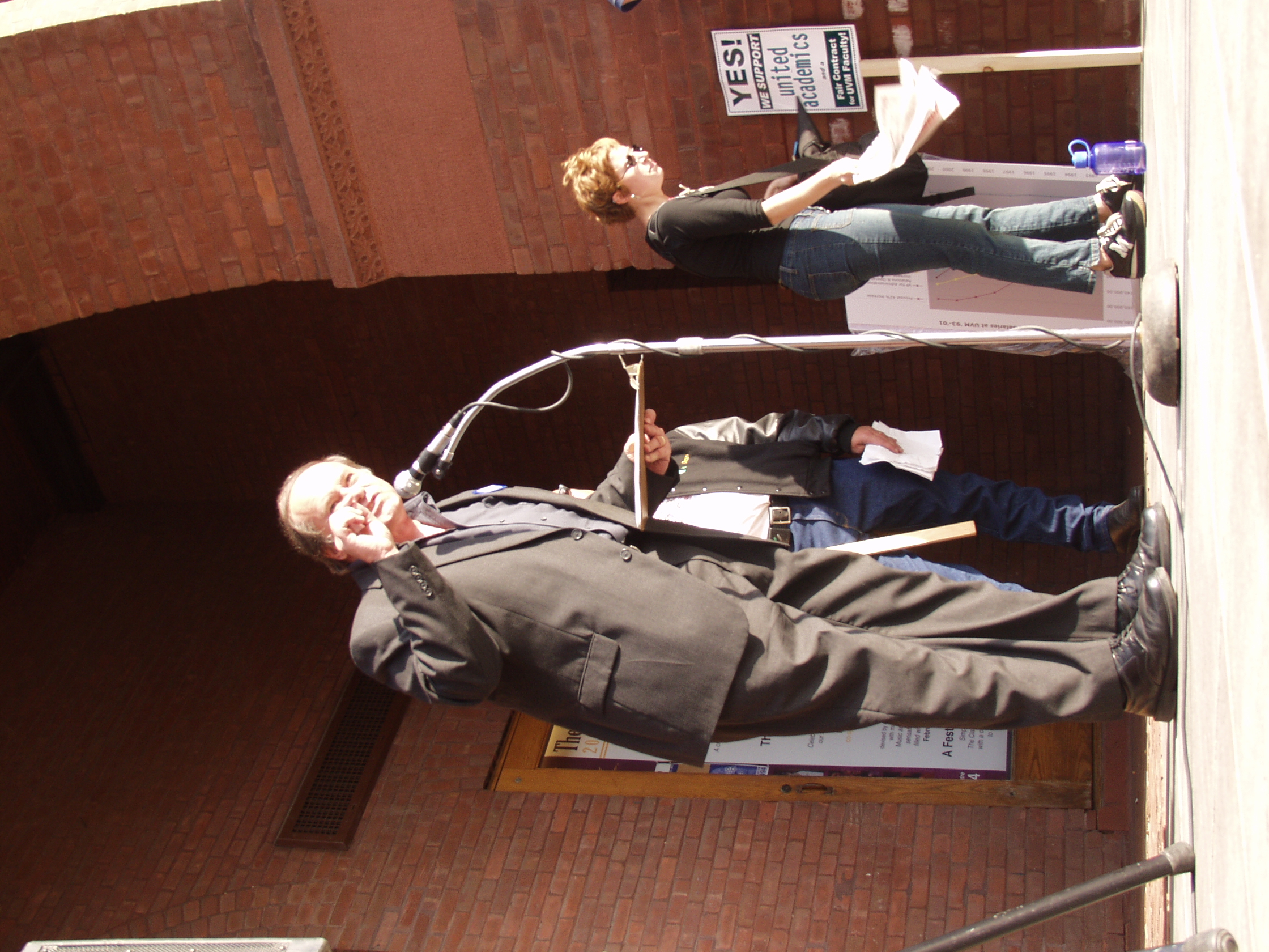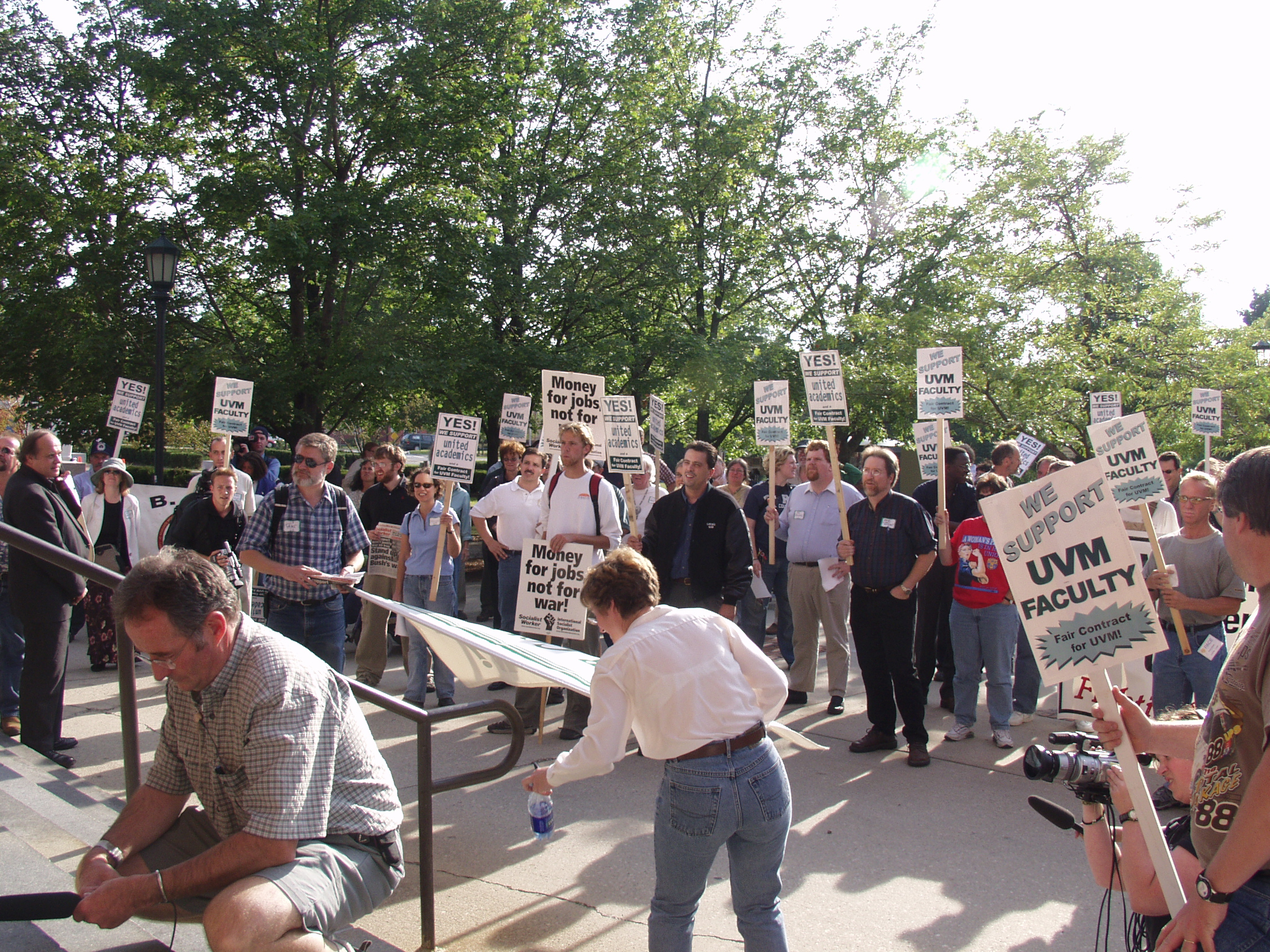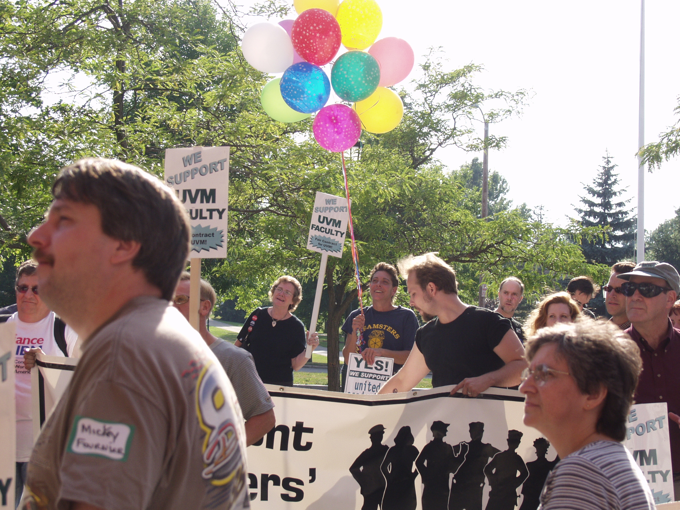 The following photographs were taken on Friday, September 13, 2002, at the United Academics (UA) - AFT/AAUP Rally for a Fair Contract. The rally was held in front of the Royall-Tyler Theatre on the University of Vermont Campus, Burlington, Vermont. The rally followed a march from the Holiday Inn on Williston Road. Photographs are of the crowd and speakers which include members of organized labor, faculty, staff and students.
