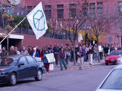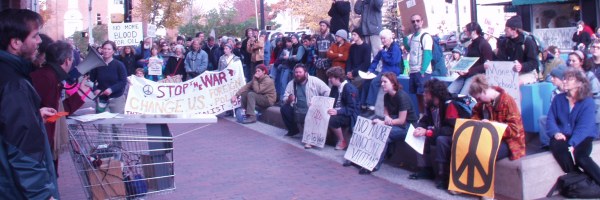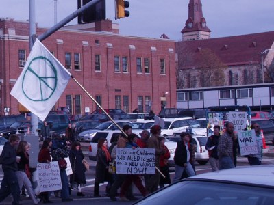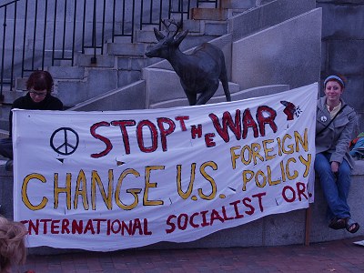 Banner reads: "Stop the War. Change U.S. Foreign Policy. Intenational Socialist Organization".