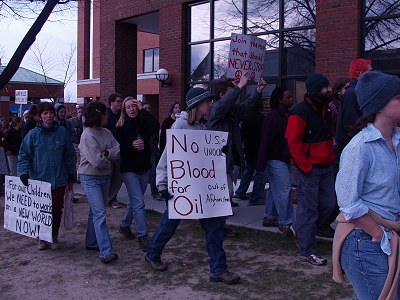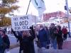 Sign reads: No Blood for Oil. US and UNOCAL out of Afghanistan.