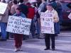 Chanting continues in front of Burlington City Hall. Protestor sign reads "No more innocent victims".