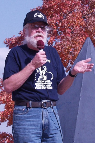 The following photographs were taken on Saturday, October 13, 2001, at the Visionary Vermont Festival. The festival was held behind the Robert Hull Fleming Museum, located on the University of Vermont campus. Photographs are of speakers, projecting from the steps of the museum using a solar powered PA system.