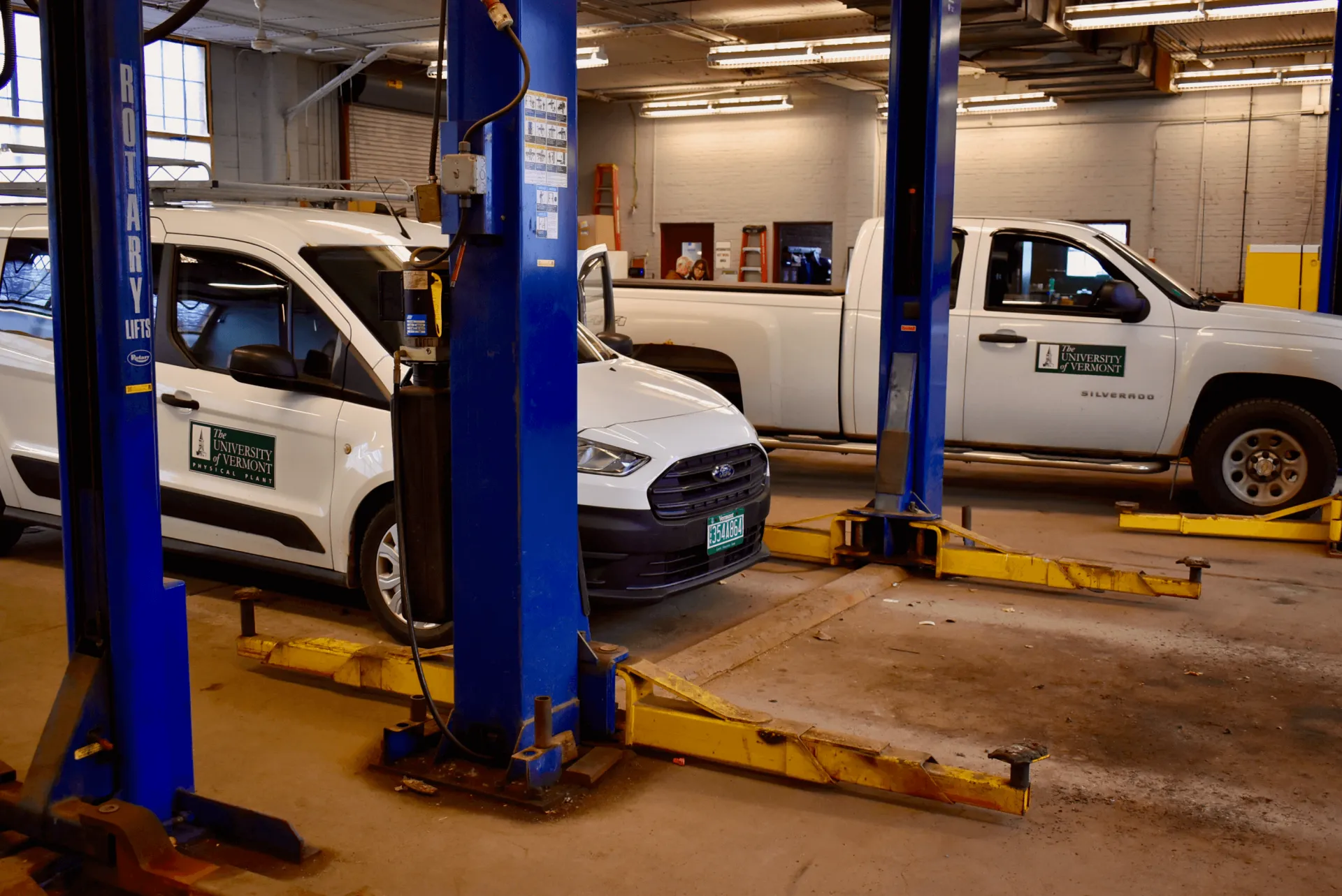 The shop is located at Fort Ethan Allen in Colchester, about 5 miles from the main campus. Staff work from 8:00AM -10:00PM each working day, enabling repairs to be done during off hours when the vehicle is most likely not needed. For convenience, the shop will pick up UVM vehicles from any campus location, and will usually return them prior to the start of the next working day.