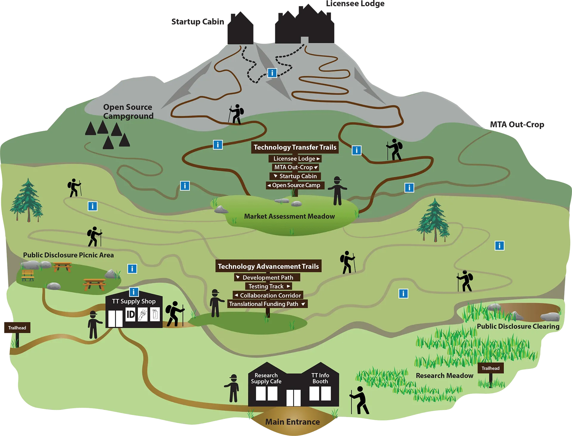 Welcome to the UVM Innovation’s Tech Transfer Trail! You are about to embark on an adventure to summit Catamount Mountain and commercialize your invention. Each pathway to commercialization is going to be different and UVM Innovations is here to guide and support you every step of the way.