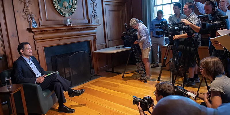 On his first day on the job, new UVM president Suresh Garimella took time to meet with local and regional media during a late Monday morning session.