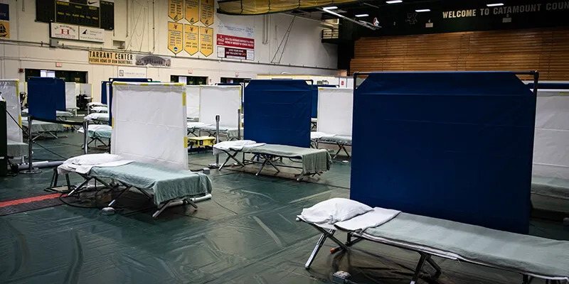 It’s a second-use transformation that has been imagined for some time by state emergency managers — state officials have considered UVM’s Athletic Complex to be ideally situated as a possible emergency medical site. With the need to ready several potential “surge facilities” for COVID-19 patients, in mid-March, state and hospital officials approached UVM with an official request to use the Athletic Complex in preparing for the pandemic.