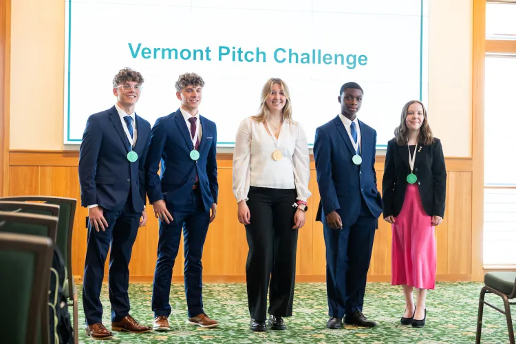 Announced last September, the Vermont Pitch Challenge attracted nearly 150 teams from seven countries and 27 states. Over 220 ambitious students took part, each eager to make a positive impact and tackle pressing challenges within their respective communities. Throughout the competition, UVM offered the students opportunities to learn from experts about business plan writing and structuring compelling pitches. After rigorous evaluation, five finalist teams were selected to present their business concepts in person to a panel of student judges from UVM's Entrepreneurship Club.
