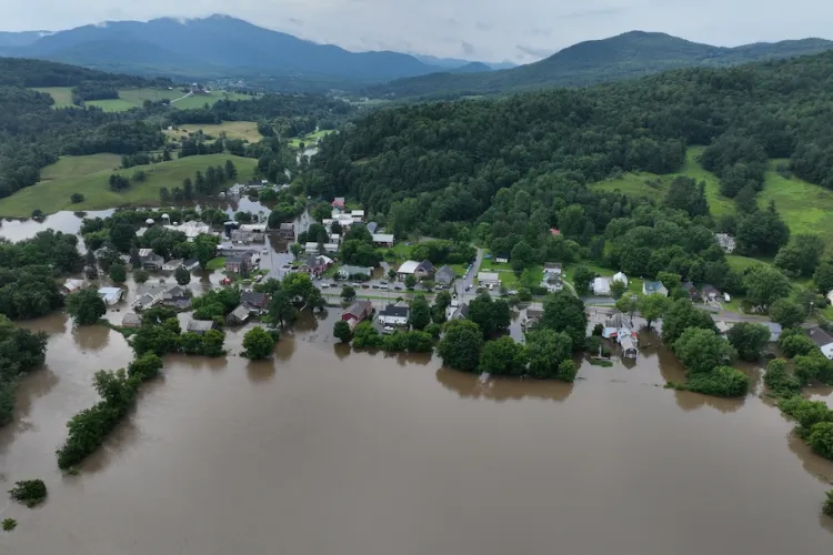 View of flooding in Cambridge, Vt., on July 11, 2023
