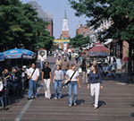 Church Street Marketplace, where youre never more than fifty feet from a cup of coffee... and the Hot Dog Lady lives on. |