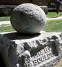 The UVM Boulder, a sphere of granite crafted by nature and discovered during railroad construction in the 1840s near Hartford, Vermont. A two-horse team hauled the trophy to UVM, where it was placed in the location it continues to stand. Rival schools used to paint the boulder before big games, but it stays pretty clean and secure (after being bolted down in 1947) these days in front of Old Mill. |