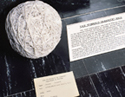 Mary Pratt, a graduate student in geology from 1968 to 1972, is responsible for a unique specimen, the mysterious fibrous paramite ball, in UVMs Geology Museum. While completing a summer research project on Lake Champlain, Mary and her co-workers wound a ball of discarded strands of parafilm. One night they decided to give it an official looking label, place it in the collection, and see how long it lasted. After puzzling tour guides for years, the mystery was unraveled during museum renovations in 1992. The ball, however, remains intact and is still on display. |