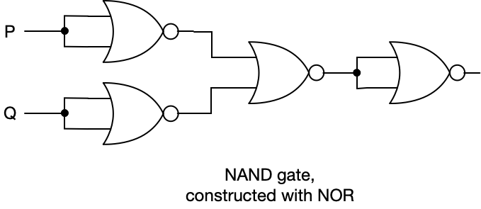 Now let’s see how to construct NOT, AND, and NAND using only NOR.