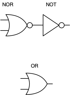 We’ve already completed CMOS constructions of these gates, and we can construct an OR gate with a NOR and a NOT.