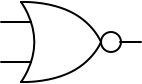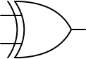 Here’s the symbol for an OR gate, with the two inputs on the left and the output on the right:
