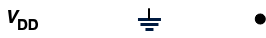 You may think of V_{DD} and the symbol to the right of it as a source for current and a drain or destination for current, respectively. The black dot indicates a junction where wires are connected. If wires cross and there is no black dot (junction) then the wires are not connected.