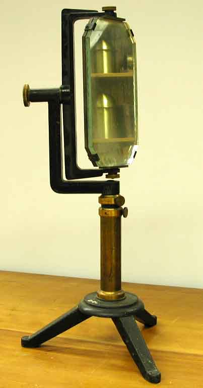 The mirror can rotate about two mutually perpendicular axes, and those axes can rotate about the verticle. | ||