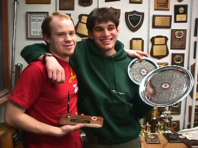|Tasty meal by banquet standards | Awards will be on display |The official activities of the Lawrence Debate Union come to a conclusion this Saturday evening in a celebration. The 2002 LDU Banquet will be held at the Waterman Manor, atop the Waterman Administration building, which overlooks Lake Champlain and downtown Burlington. Saturday, April 27, the festivities will have doors opemn at 5:30 PM, and people are oinvited to gather on the porch (or indoors of the weather is unfriendly) for fellowship and mutual introduction of friends and family. Sometime between 6 PM and 6:15 we will be open the food line for a buddet style meal. The salads will include delixe Greek and Mozarella, tomato and basil. The main course are cranberry Dijon chicken and baked ziti. There will be a variety of cheesecakes for desert. After cheesecake begins to vanish the formal part of the program will begin. The program will include: greetings, thank yous, special awards presentations, student awards presentations, senior speeches, and then farewell.